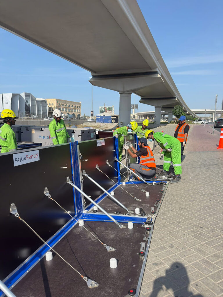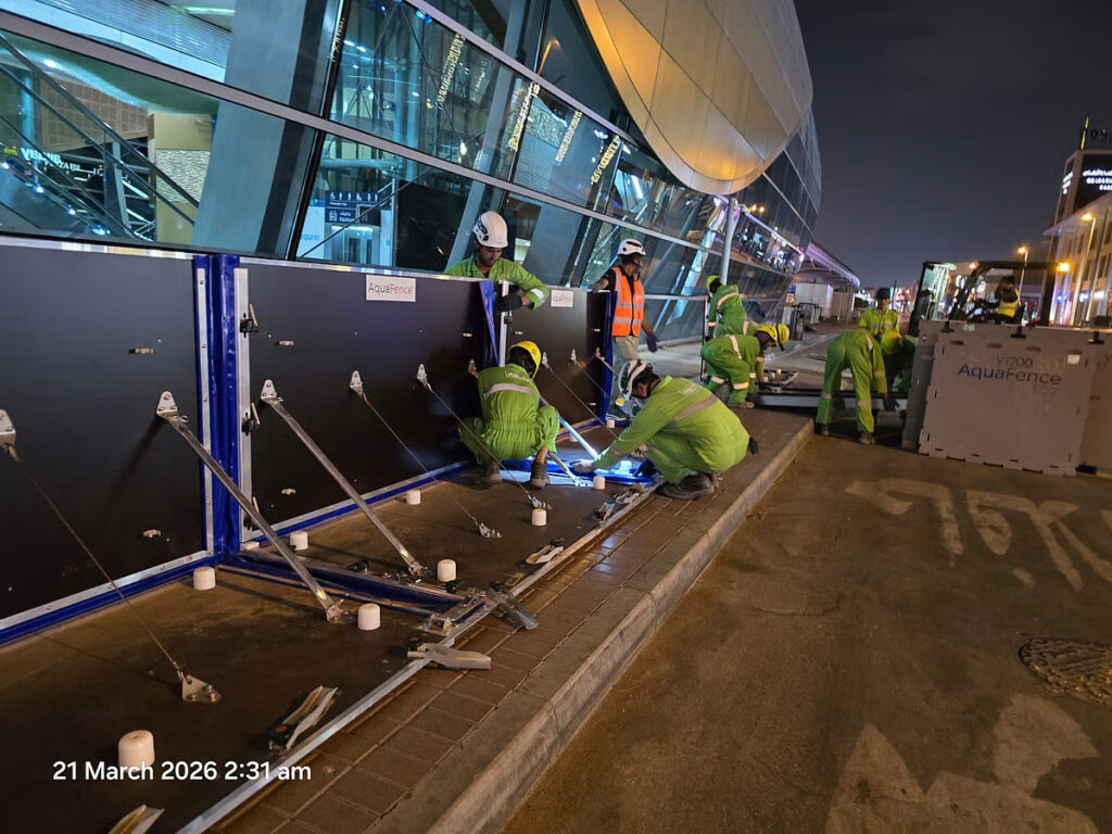 Dubai-based Avalon Access Technical Services, in a joint venture with AquaFence, won the contract to supply and install the system for the RTA. The barriers—called FloodWall—are installed at heights of 1.2 and 1.8 metres, forming protective perimeters around four of the Metro’s most flood-prone stations.