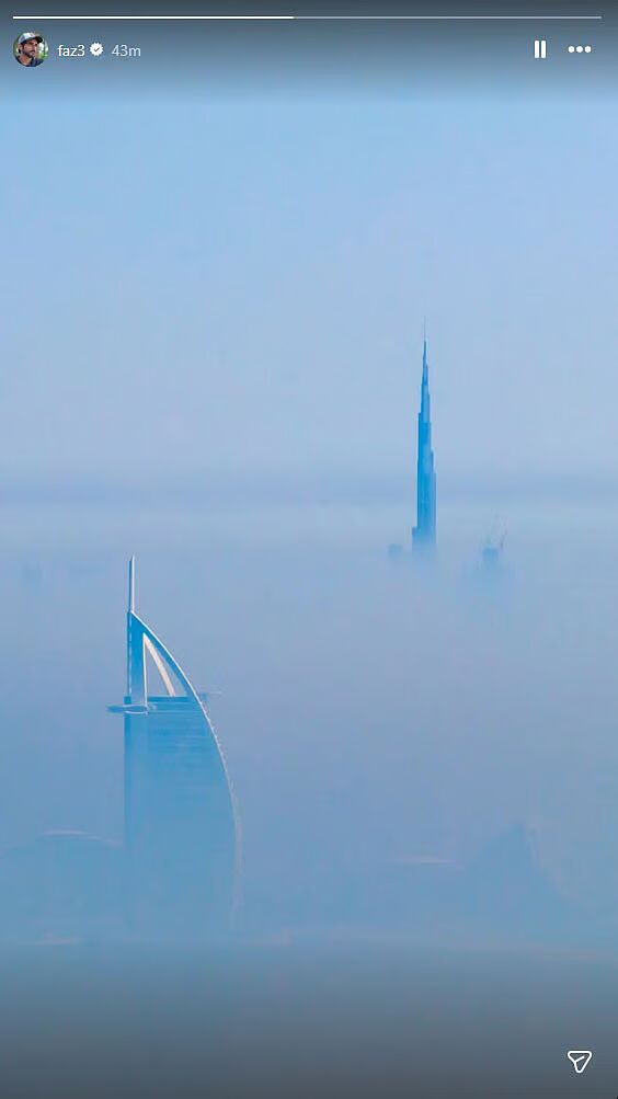Posted to his official Instagram account, @faz3, the photograph captures the spires of the Burj Khalifa and the distinctive silhouette of the Burj Al Arab rising above a thick layer of white mist. The Crown Prince is known for documenting Dubai’s landmarks during seasonal weather shifts.