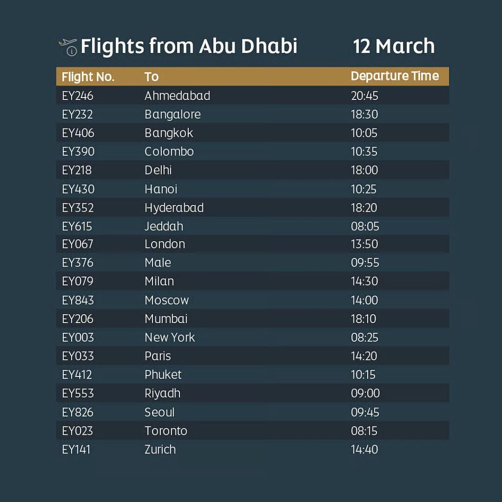 All flights are scheduled to operate once safety criteria are met. Guests are advised to follow official Etihad channels for verified updates.