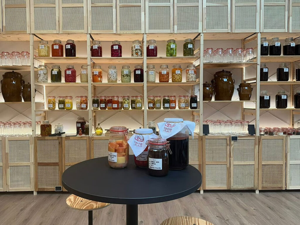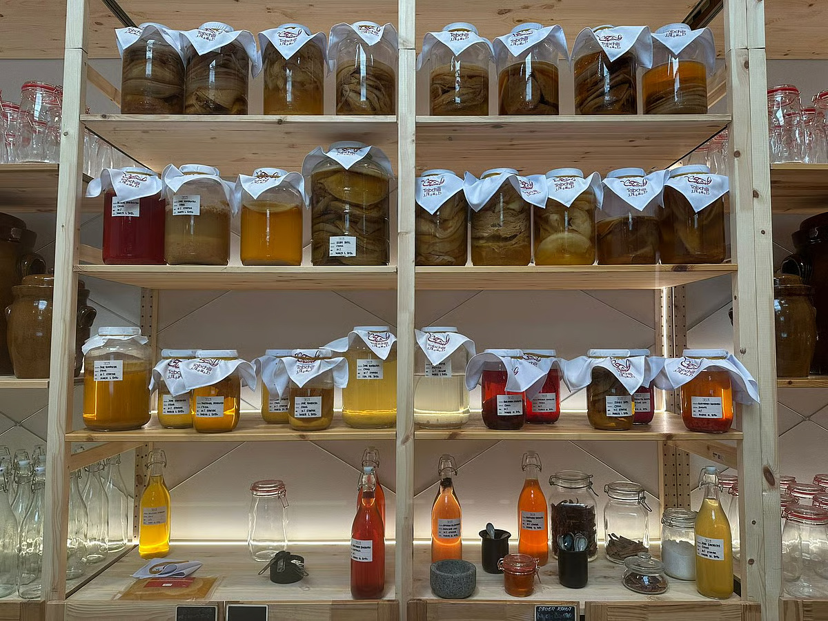 Inside, however, the space opens into rows of colourful jars, fermentation rooms, and shelves that quietly reflect a deep passion for fermented food.