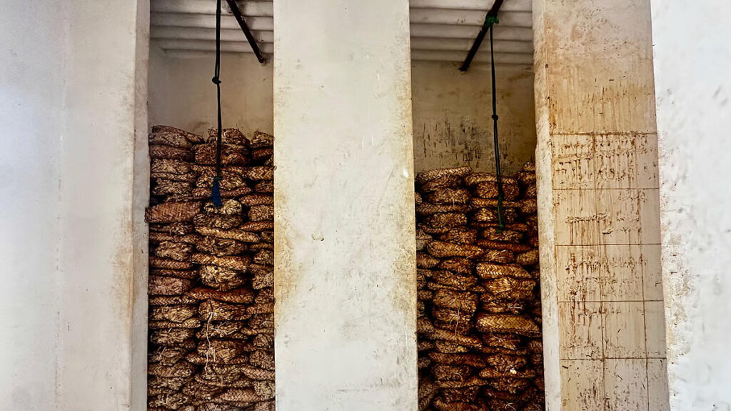 The Madbasa itself is a marvel of traditional engineering: a sealed, windowless room with a single entrance to trap heat and keep out dust. Dates are stacked on an elevated structure called “Al-Amed”, with floors featuring channels that guide the syrup into a collection pit, or ‘jabia’, often lined with smooth clay.