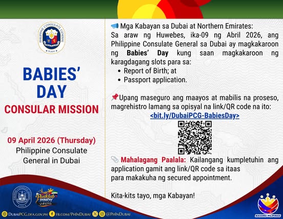 Philippine Consulate in Dubai highlights babies’ day mission and election deadlines for UAE-based Filipinos.