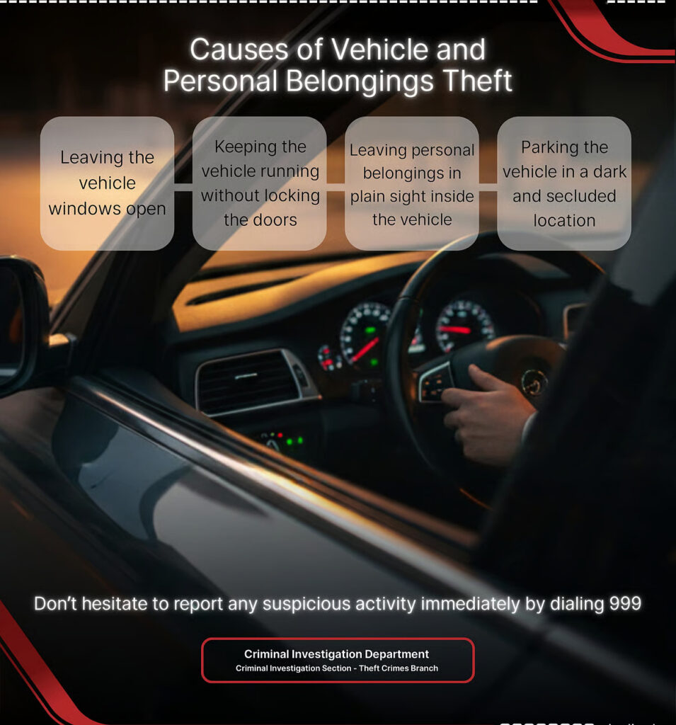 Ras Al Khaimah Police stressed that community vigilance plays a key role in preventing vehicle theft. Residents are encouraged to report suspicious activity, such as individuals loitering near parked cars or trying door handles, by calling 999.