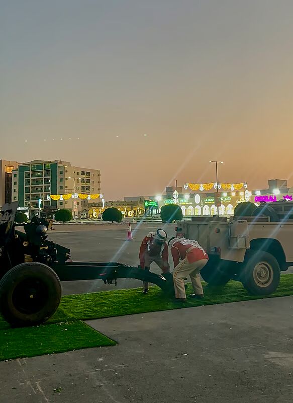 The cannon is transported from Abu Dhabi roughly two to three weeks before Ramadan. Upon arrival in Ras Al Khaimah, it undergoes intensive servicing.