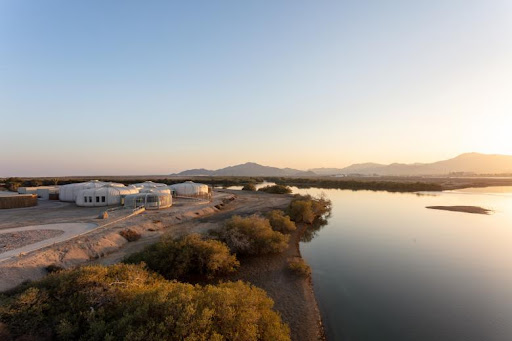 Further developments at the Kalba waterfront include a winding water channel designed to improve water circulation, as well as the cleanup of saline patches that previously caused unpleasant odors.